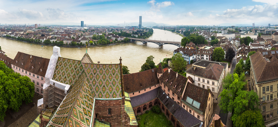 Cathédrale (Münster) : Construite entre le XIe et le XVIe siècle dans un style romano-gothique et symbole de la ville, la cathédrale de Bâle est un chef-d'œuvre de l'art décoratif aux tuiles colorées en son sommet et des sculptures finement élaborées. Ses tours jumelles dominent le Rhin, tandis que sa terrasse d’observation, le Münster Pfalz, à l'arrière de l’édifice offre une vue unique sur la rivière, les montagnes françaises des Vosges et la Forêt Noire. À l'intérieur de la cathédrale se trouve la tombe de l'important philosophe et humaniste de la Renaissance, Érasme de Rotterdam.