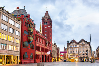Hôtel de ville (Rathaus) : Construit au XVIe siècle dans un style gothique tardif de Bourgogne, l’hôtel de ville, en plein cœur de la Marktplatz, impressionne par sa couleur de grès rouge vif, son imposant beffroi et sa façade peinte. Il mérite de parcourir sa belle cour intérieure avec ses galeries romantiques en arcades et ses merveilleuses fresques. Ne manquez pas de visiter les deux salles du Conseil, où se réunissent le parlement et le gouvernement cantonal.