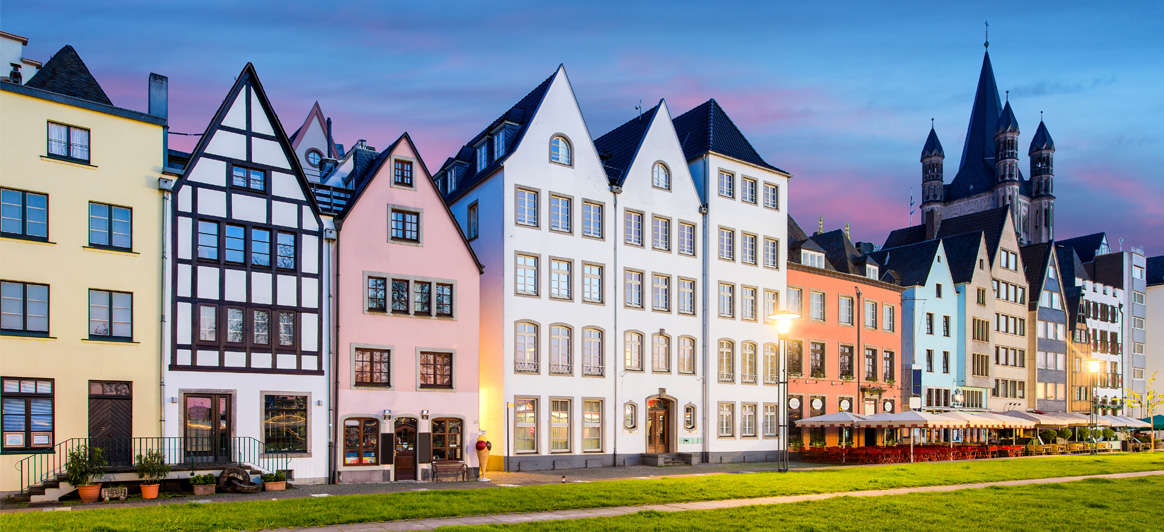 La vieille ville (Altstadt) : S’étendant sur la rive gauche à l'ouest du Rhin, la vieille ville médiévale est le cœur du centre historique de Cologne. Le décor pittoresque du quartier, fait d’étroites rues pavées, de maisons traditionnelles colorées aux toits triangulaires, d’innombrables brasseries historiques, mais également l'ambiance animée des petits cafés, bars et pubs - restaurants qui l'agrémentent, rendent sa visite inoubliable. Faites une halte sur la Place de l’hôtel de ville, au Prétoire romain et dans ses douze églises romanes.