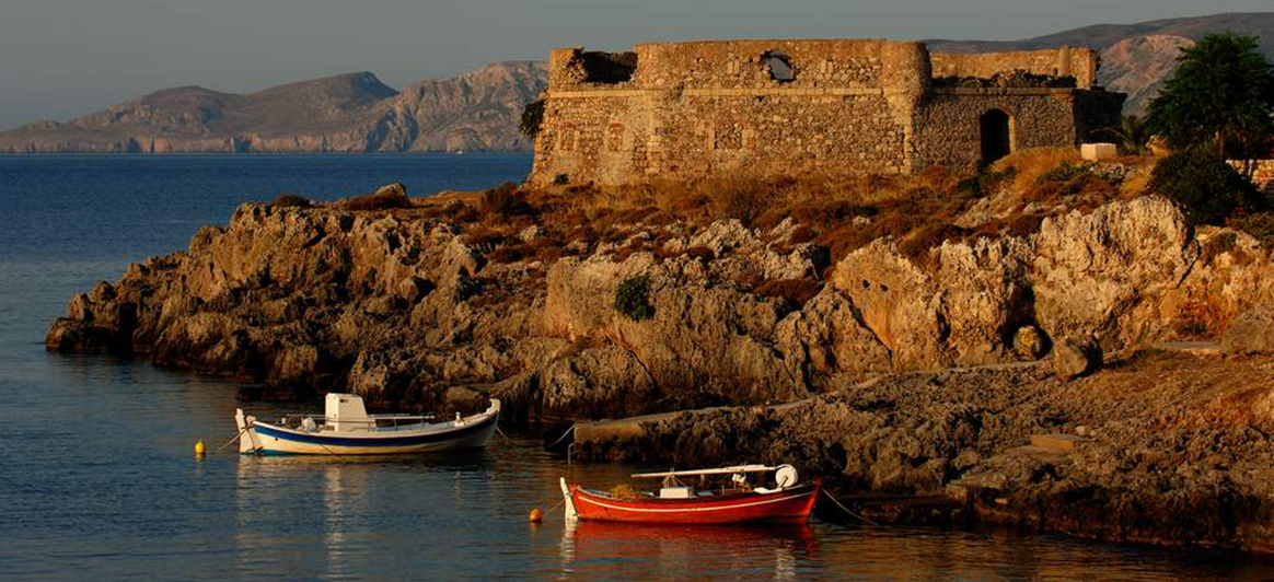 Chora – Bâtie sur une colline au sud de l’île, la capitale de Cythère regorge de demeures patriciennes, de châteaux vénitiens, de petites églises et de bâtiments du protectorat britannique. La promenade dans les rues pavées vous mènera au Belvédère d’où la vue, au coucher du soleil, vous époustouflera ! De là, montez jusqu’au château (kastro) ; perché sur les rochers et bâti sur une petite fortification du 13e siècle, la partie la plus grande étant construite en 1503 par les Vénitiens. Vous y verrez le palais du provéditeur dans lequel sont abritées les archives historiques de Cythère dont des documents remontant au 16e siècle.