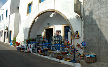 À Cythère, cela vaut la peine d’acheter les « ladopaximadi » (pain braisé) à la boulangerie de Potamos, du miel de thym d’excellente qualité, de l’huile pure vierge, du vin local, (blanc ou rosé), des plantes aromatiques et le fromage local « mitato ». Aussi, les « paximadia » à la cannelle et le « fatourada » (une liqueur locale à base de tsipouro – une eau-de-vie et de mandarines). Une bonne expérience est de se rendre sur le marché local de produits frais de Potamos qui se tient tous les dimanches sur la place du village.