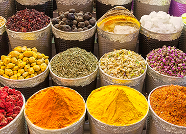 Perfectionnez vos talents de négociateur sur les marchés traditionnels animés du vieux Dubaï, une célébration pittoresque de couleurs et de parfums. Ne manquez pas le souk de Bur Dubai dans la vieille ville, à proximité du front de mer de Bur Dubai. Sous sa toiture en bois, vous pourrez y faire d'incroyables affaires, des pashminas et des t-shirts aux contrefaçons de marques célèbres. Ne partez pas sans avoir exploré la section des étoffes pour y acheter de la soie, du coton, du satin et du velours de grande qualité à des prix abordables. Embarquez ensuite à bord d'un abra (taxi flottant) et dirigez-vous vers le quartier historique de Deira pour explorer le légendaire Souk de l'or, un labyrinthe commercial fascinant à l'atmosphère des Mille et une nuits, et élaborez vos propres bijoux en or et autres métaux précieux. Visitez-le au crépuscule, lorsque son décor rappelle la grotte d'Aladin, et n'hésitez pas à faire fabriquer le bijou de vos rêves. Avant de partir, visitez le célèbre souk aux épices pour faire le plein d'épices du Moyen-Orient (de la cardamome, du sumac et du cumin au citron vert séché) ainsi que le souk aux parfums pour ses essences rares, ses huiles essentielles et ses encens (bakhoor) à base de Oud (précieuse résine de bois d’agar). Pour une forme plus moderne du souk classique, franchissez les portes de l'éblouissant Souk Al Bahar avec son architecture arabesque captivante et son mélange éclectique de boutiques d'artisanat, de tapis, de meubles, de bijoux, de parfums, d'œuvres d'art et de mode ethnique. Le souk de Madinat, qui fait partie de l'impressionnant Madinat Jumeirah (construit dans le style d’une citadelle de style arabe, abritant des hôtels cinq étoiles, des villas, des restaurants et des boutiques, disposés autour d'un système de canaux artificiels rappelant la Petite Venise) regorge également d’objets traditionnels. Vous y trouverez des souvenirs et des objets uniques pour la maison, des antiquités, des objets d'art et d'artisanat et bien plus encore.