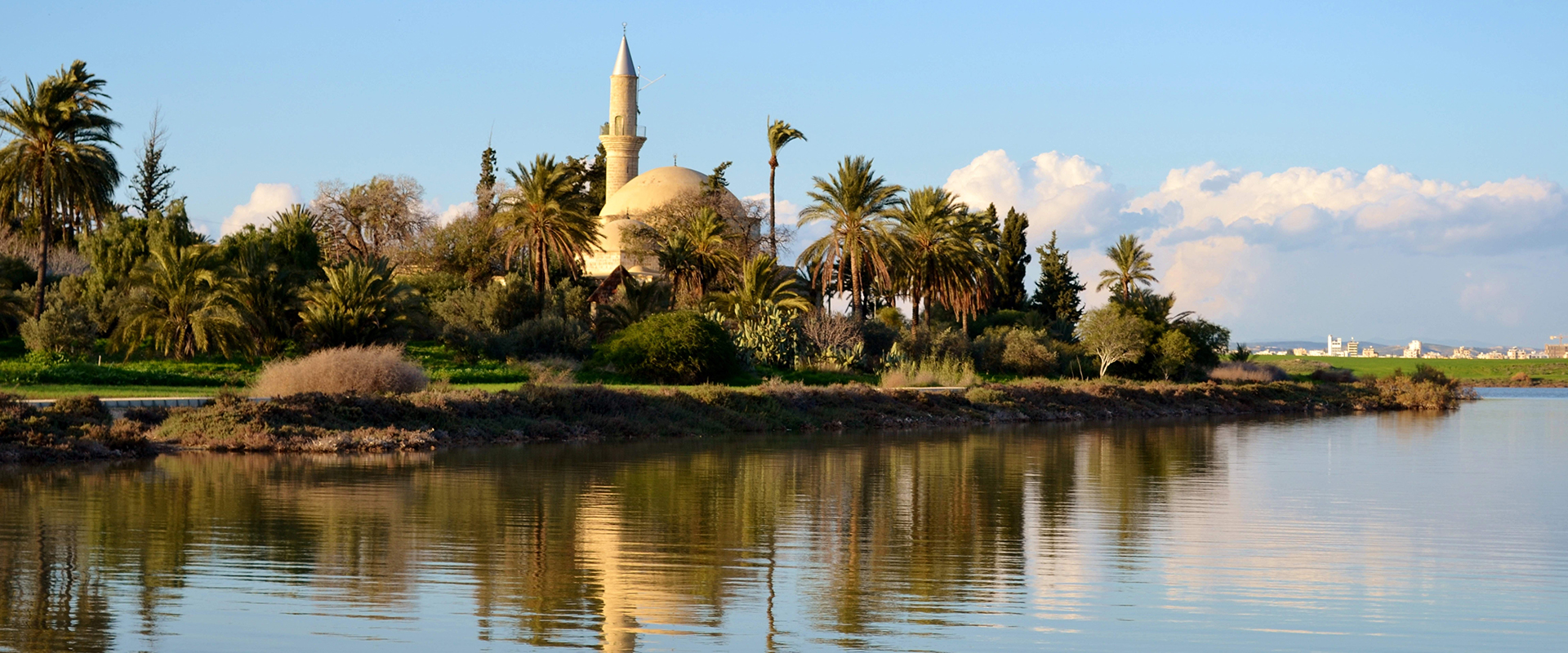 Mosquée Hala Sultan Tekke : l'un des plus importants lieux de culte de l'Islam émerge entre les palmiers et les cèdres, à côté du lac salé de Larnaka, à six kilomètres de la ville. Remarquable exemple d’architecture ottomane du XIXe siècle, ce lieu saint octogonal fut construit à l'endroit où –selon les dires– fut enterrée Umm Haram, qui avait un lien de parenté avec le prophète Mahomet. Les eaux du lac salé voisin à Tekke constituent un biotope aquatique, protégé par le traité de Ramsar, qui se remplit en hiver de flamants roses et autres oiseaux migrateurs.