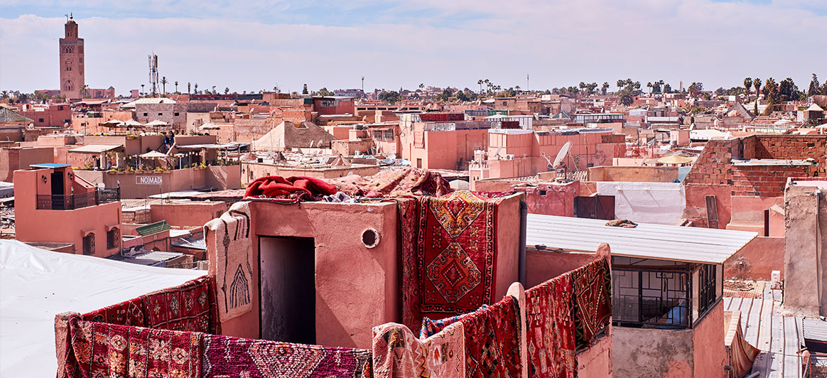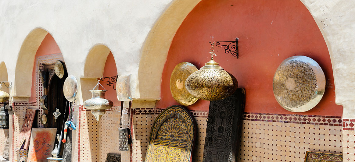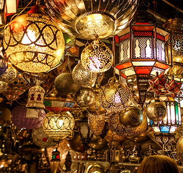 Découvrez la magie colorée et l'atmosphère unique des souks (bazars), où l'abondance de l'offre dépasse l'imagination et où le marchandage est considéré comme l’ultime sésame. Vous y trouverez de magnifiques produits marocains, parmi lesquels des accessoires de mode en cuir, des étoffes, des céramiques, des bijoux, des objets de décoration en métal ou en raphia, des tapis et des épices.