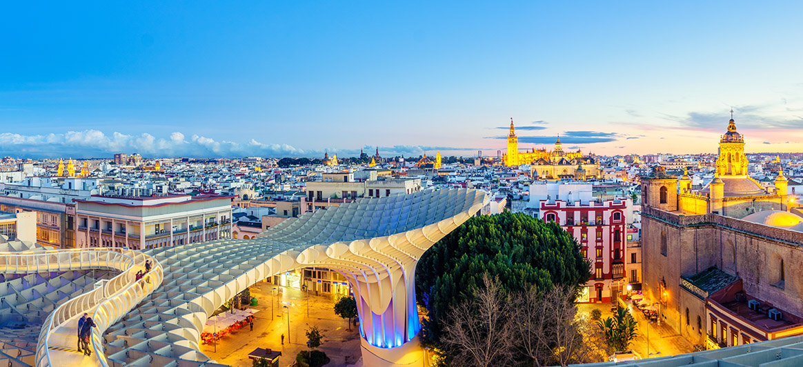 Metropol Parasol : Également connue comme les « Champignons de Séville » (« Setas de Sevilla »), cette structure en bois sculpté de six immenses « parasols » (rappelant des champignons) qui abritent la Plaza de la Encarnación a été conçue en 2011 par l'architecte allemand Jurgen Mayer. Sur ses cinq niveaux, on trouve des restaurants, un marché alimentaire, des boutiques et des espaces événementiels. L'impressionnant Musée archéologique (Antiquarium) au sous-sol permet d’admirer les fouilles in situ de ruines romaines. Montez sur le toit (El Mirador), un observatoire offrant une vue panoramique sur la ville, doté d’une passerelle pour se promener.