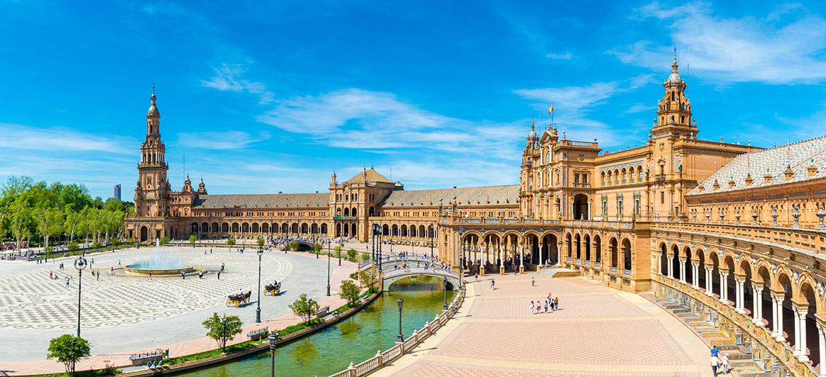 Place d’Espagne (Plaza de España) : Conçue par le grand architecte sévillan Aníbal González pour l'Exposition ibéro-américaine de 1929, la place la plus célèbre de la ville est un imposant chef-d'œuvre semi-circulaire de l’architecture néo-baroque. Le complexe architectural monumental se compose du pavillon national de l'Espagne, entouré d’un lac-canal qu’enjambent trois ponts, une série de 52 bancs en céramique peinte représentant les provinces d'Espagne. Offrez-vous une promenade romantique en bateau sur le canal mais également sous la galerie à portique ornée d'un admirable plafond artesonado. La place a servi de décor à plusieurs films, dont « Lawrence d'Arabie » et « Star Wars ».