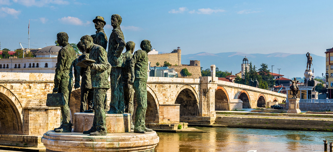 Pont de Pierre (Kamen Most): construite au XVe siècle (1451 - 1469) par le Sultan Mehmet II le Conquérant, ce pont, simple mais impressionnant, est le véritable symbole de Skopje et figure sur le blason de la ville. Avec ses 12 arches semi-circulaires et ses 214 mètres de long, la construction emblématique relie depuis des siècles le quartier ottoman de Skopje à la ville nouvelle, traversant la rivière Vardar.