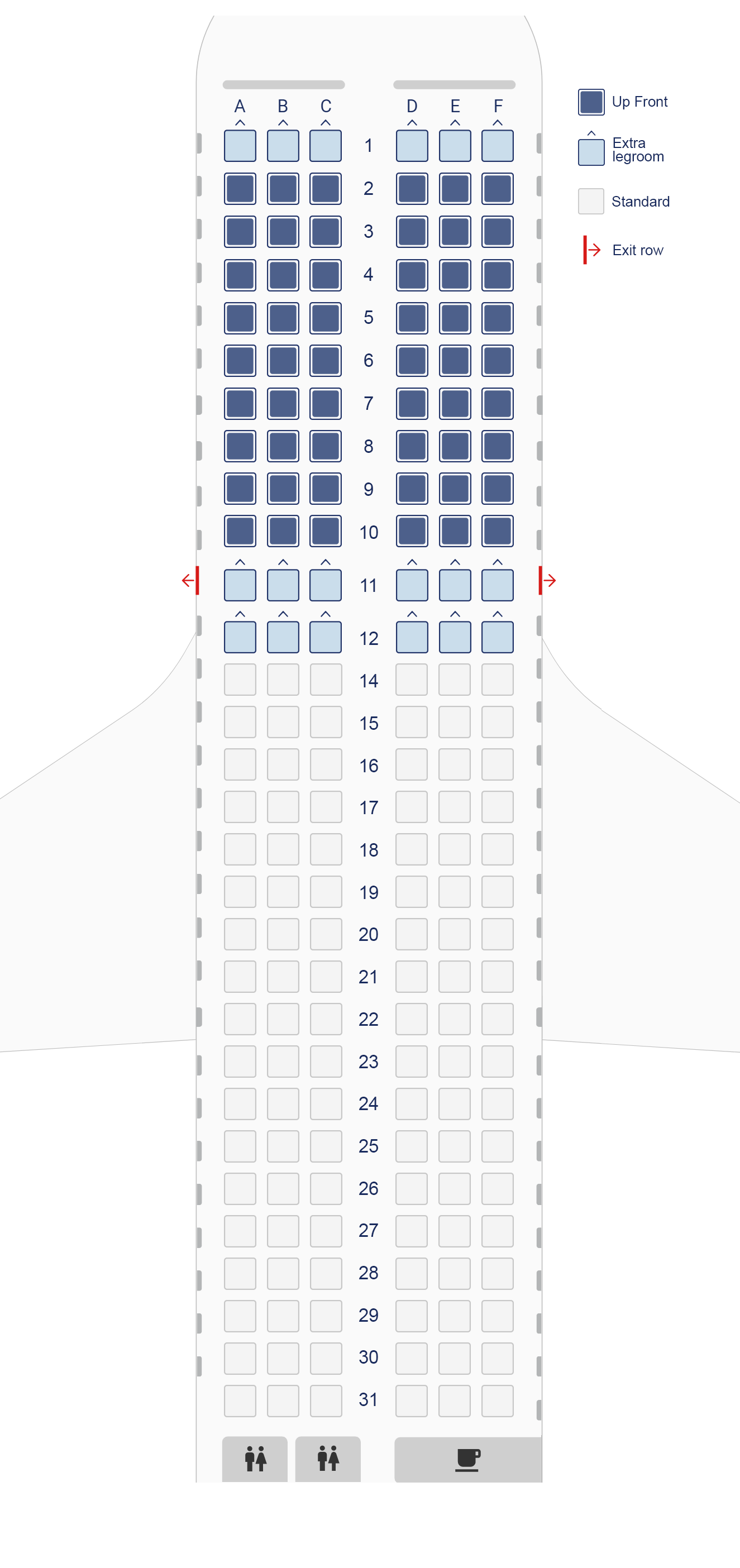 Les plans de cabine sont donnés à titre indicatif et peuvent varier entre les appareils du même type. Les plans de cabine exacts peuvent être affichés pendant l'enregistrement.